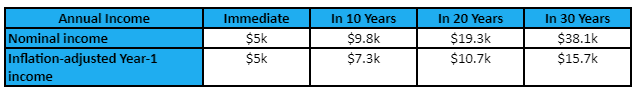 Comparing the two options’ inflation-adjusted incomes, we find: