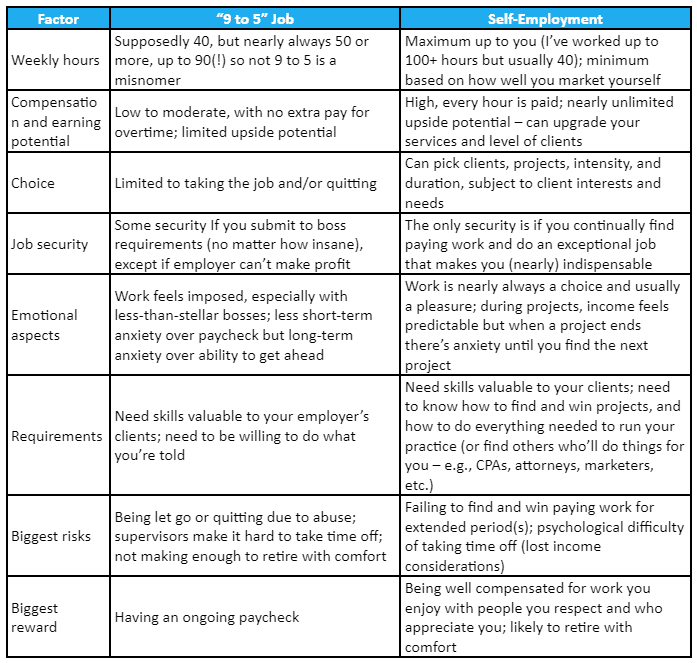 My Take on the Comparison Between a 9-5 Job and Self-Employment