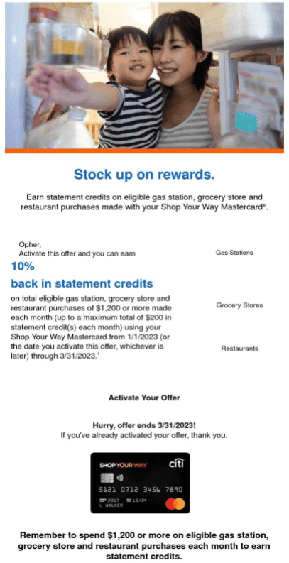 - Shop Your Way (SYW) Mastercard is what I pull out at grocery stores, gas stations, and restaurants, with over 13% rewards (see below).